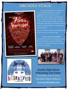 ARCADIA STAGE presents Alice in Wonderland at the Arcadia High School Performing Arts Center November 20-22, 2014