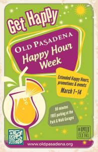 Get Happy” during the annual Old Pasadena Happy Hour Week from Tuesday, March 1, through Monday, March 14, at participating restaurants, bars, and lounges. Enjoy extended Happy Hour food and drink promotions every day of the week. Choose from assorted tastings and flights, specialty cocktails, and food pairings at your favorite bars, or discover something new with our recommended itineraries and crawls. Don’t miss Lucky Baldwin’s Belgian Beer event only in Old Pas!